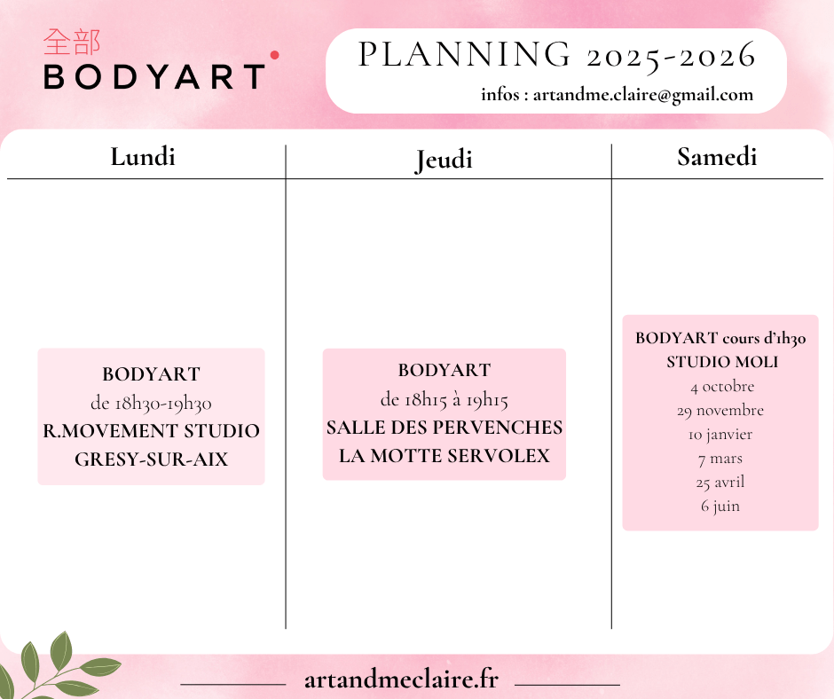 C’est avec grand plaisir que je vous retrouverai encore cette année autour du planning de cours ci-dessous. Un planning avec deux cours hebdo : à R.Movement Studio à Grésy sur Aix le lundi et à la Motte-Servolex, salle des pervenches le jeudi. Vous me retrouverez aussi autour de cours sous un format 1h30 au Studio Moli à Aix-les-Bains le samedi matin.